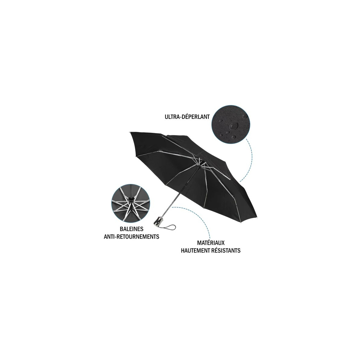 Parapluie 3 Sections Ultra Solide Noir - Isotoner