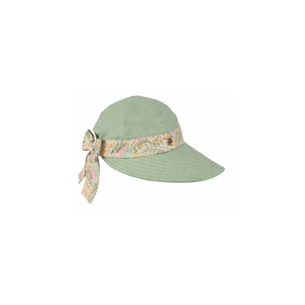 Casquette visière en coton organique au coloris sage , sublimée par une bande fleurie et un nœud à l’arrière. Confortable, légère et réglable, elle est idéale pour un look estival élégant.